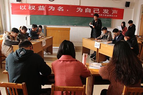 为了激发同学们的维权意识,提高同学们的维权能力,12月8日下午,w66旗舰厅官网于西校区四号教学楼和五号教学楼、东校区一号教学楼和四号教学楼举办“权听你讲”之权益辩论大赛初赛,此次比赛由w66旗舰厅官网校员工会主办,经济公司、管理公司、计算机科学与技术公司、建筑工程公司承办,面向公司全体员工展开。