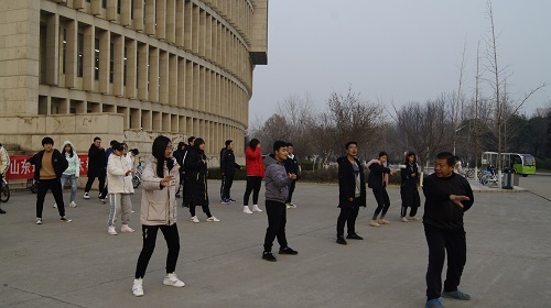 下午3点,社团成员们便早早的到了指定地点,在社团负责人简单介绍了本次太极实战课堂的内容后,由社团骨干的带领下先进行热身活动。苗老师到场后,向同学们讲述了一些太极知识,随后实战课堂正式开始。老师首先讲授了太极拳的身法,身法的身在这里是指人的头、肩、胸、臀、腰五个部位这一阶段属于打基础、学架子阶段,主要在架子的名称顺序和外形规范、姿势准确上下功夫,每一动势都要立身中正。立身中正,顾名思义就是在走架子的运动中,身体竖好,中正不偏,不可前仰后合、左歪右斜、挺胸腆肚和弯腰驼背。太极拳的运动,不管是健身还是防身,都应以“呼吸练,气为主”道学讲“虚其心,实其腹”练武之人外练筋骨皮,内练一口气。这口气就是丹田之气。太极手型分掌、拳跟勾型,太极拳掌的要求是,五指自然伸展,互不靠拢,但也不要太开,以手掌宽为度,大拇指自然松弛,虎口自然圆开,掌心不要太凹或太张,以自然舒适为度。食指领劲。掌形成瓦棱状。苗老师表示,太极精神主中庸思想,贵在刚柔并济,阴阳调和,无论何种,皆是贵在坚持。