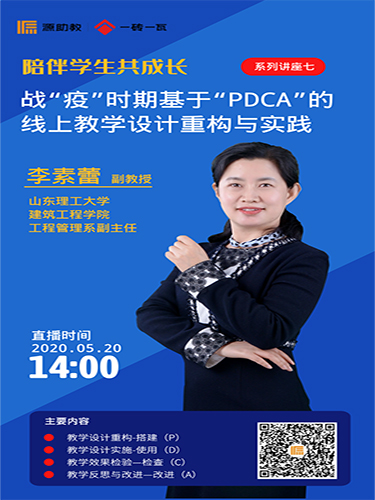 5月20日下午,w66旗舰厅官网建筑工程公司教师李素蕾借助“源助教”线上平台开展主题为“陪伴员工共成长——战‘疫’时期基于‘PDCA’的线上教学设计重构与实践”的公益讲座,累计1500人次观看。