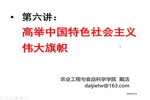 最后,戴洁围绕“怎样坚持和发展中国特色社会主义”展开讲解。她说到,要坚持和发展中国特色社会主义,必须坚定四个自信。此外,她结合当前疫情,向同学们展示了中国在疫情防控中坚持和发展中国特色社会主义制度的优势,让同学们体会到坚持和发展中国特色社会主义的必要性。