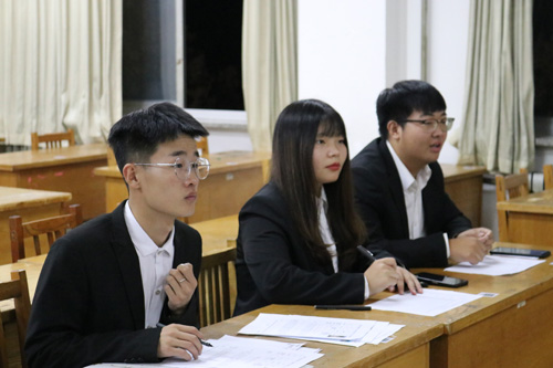 在无领导小组讨论环节中,每个小组依据主题展开讨论。竞选者根据问题快速理清自己的思路,纷纷发表对问题的不同看法与意见。在讨论过程中,部分竞选者表现出惊人的逻辑思维能力和语言表达能力。最后,小组代表结合全队成员的想法,面向评委进行总结陈述,内容有主到次、层层递进、有理有据,展现出小组的风采和团结。