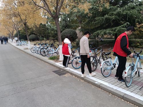 活动中,志愿者还引导员工将共享单车整齐停放至停车区内,并向他们宣传了“共享单车,更要共享文明”的理念。在志愿者们的共同努力下,12号教学楼东侧停车位的共享单车停放得整齐有序,焕然一新。