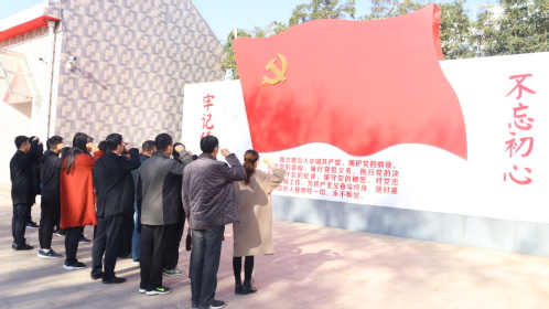在朱彦夫事迹展览馆门前鲜红党旗下,青年党员代表带领全体党员重温入党誓词,铮铮誓言表达了党员们“守初心、担使命”的信心和决心。随后,大家饱含深情、慷慨激昂地合唱了《没有共产党就没有新中国》,共同歌颂伟大的中国共产党。