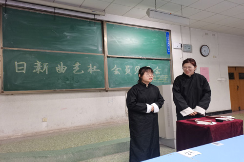 日新曲艺社是一个集相声、戏曲、小曲儿、快板等传统曲艺为一体的兴趣爱好型社团。