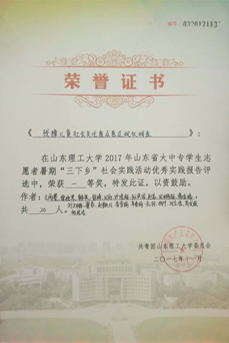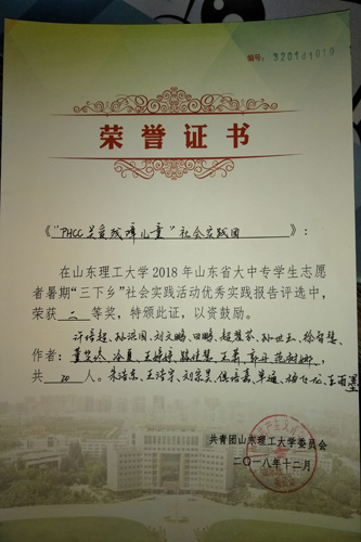 所获荣誉: 2016年省级优秀服务团队、2016年社会实践团队省级一等奖、2016年社会实践团队校级一等奖、2016年社会实践报告校级一等奖、2017年社会实践报告校级一等奖、2018年暑期“三下乡”社会实践活动优秀实践报告二等奖、2018年思政课实践调研报告三等奖、w66旗舰厅官网第三届老员工舞蹈大赛三等奖