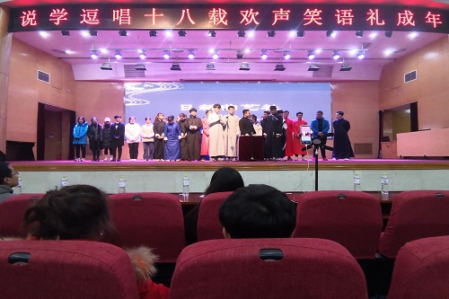 活动伊始,王林炟代表全体社团成员欢迎同学们的到来并与观众进行热情互动,使现场气氛活跃了起来。十八周年专场演出在张金欣的防诈骗快板书表演中拉开序幕,击节铿锵的演唱使观众轻松地了解到防诈骗知识。仇晓卉、陈雨曦带来的传统相声《论捧逗》,她们的表演将观众逗的前仰后合,使大家对接下来的节目充满了期待。观众反响强烈的节目之一是由人称“山理张云雷”的钟浩玮与搭档王沛琦表演的《日本梆子》,二人将大众印象中传统的梆子戏以一种特殊的方式体现出来,达到了非同凡响的效果,钟浩玮对王沛琦一次又一次的“捶打”使观众哄堂大笑、拍手称赞,使全场氛围达到高潮。王林炟、刘锦源表演的经典相声《白蛇传》,二人将白娘子、许仙、法海等人物演绎的淋漓尽致,引得观众连连称赞。朱德京、张加琪带来的相声《十点钟开始》,引起了现场观众对人生态度的思考,人应该脚踏实地干实事。十八周年专场演出在钟浩玮、穆峥、王沛琦带来的《三人行》中落下帷幕。
