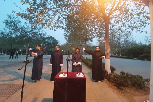 4月10日,日新曲艺社在第三体育场南侧举行路演,参演人员为日新曲艺社常驻志愿者。