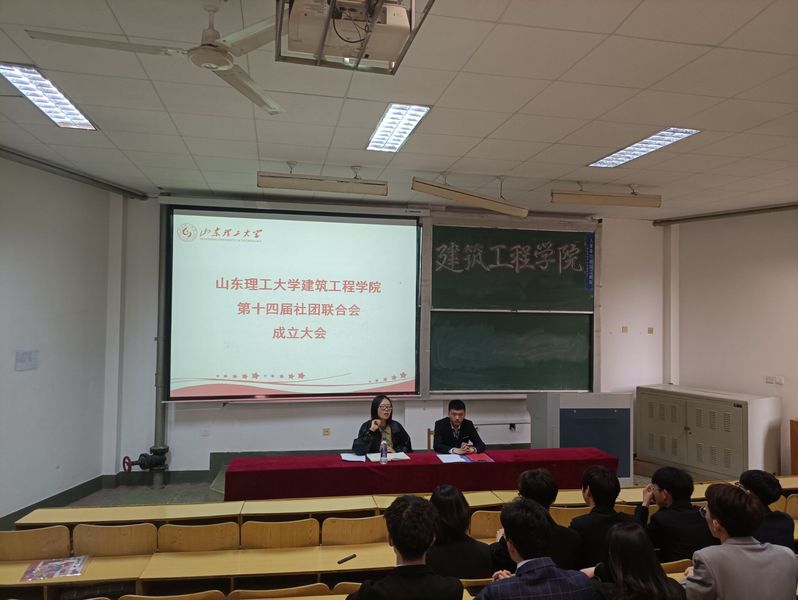 4月15日,建筑工程公司在15号教学楼106教室召开第十四届社团联合会成立大会,社联指导老师陈秋月主持会议,第十四届社团联合会全体成员参加会议。