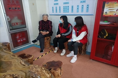 志愿者们到达公寓后分成几个小组,打扫老年公寓内部的卫生、清理院子里的落叶、擦拭栏杆等,为老人们营造一个干净而温馨的生活环境。打扫完毕,志愿者们开始陪老人们聊家常,听老人们讲讲过去,讨论一下现在;有些志愿者还为老人们表演了自己准备的节目,演唱了不少红色革命歌曲;不少老人反映,志愿者们就像他们自己的孩子一样,减少了老人们的思念之苦。离别时,一位86岁高龄的奶奶送给每位志愿者一份自己撰写的毛笔字,以表达她对志愿者们的谢意,希望志愿者们常来老年公寓。