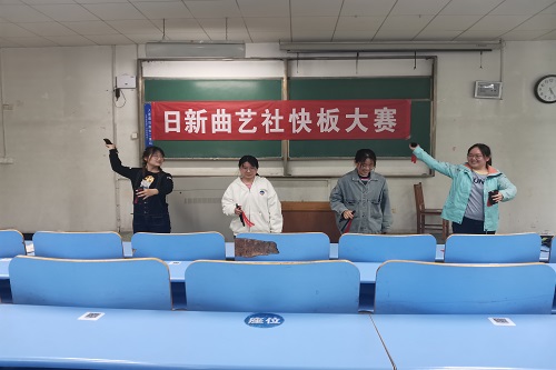 为了更好地传播快板艺术,传承与弘扬中华民族传统文化,丰富同学们的课余生活,4月25日,日新曲艺社在5号教学楼201教室举行了第二届快板大赛,日新曲艺社前任负责人王林炟担任此次比赛的评委。