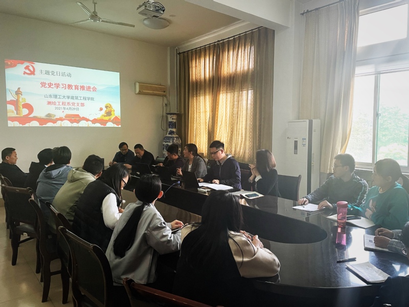 4月29日下午,建筑工程公司测绘工程系党支部在12号教学楼340会议室召开党史学习教育工作推进会,党支部书记杨朝斌主持会议,支部全体教工党员参加,公司党委书记黄文娟出席会议并调研指导工作。