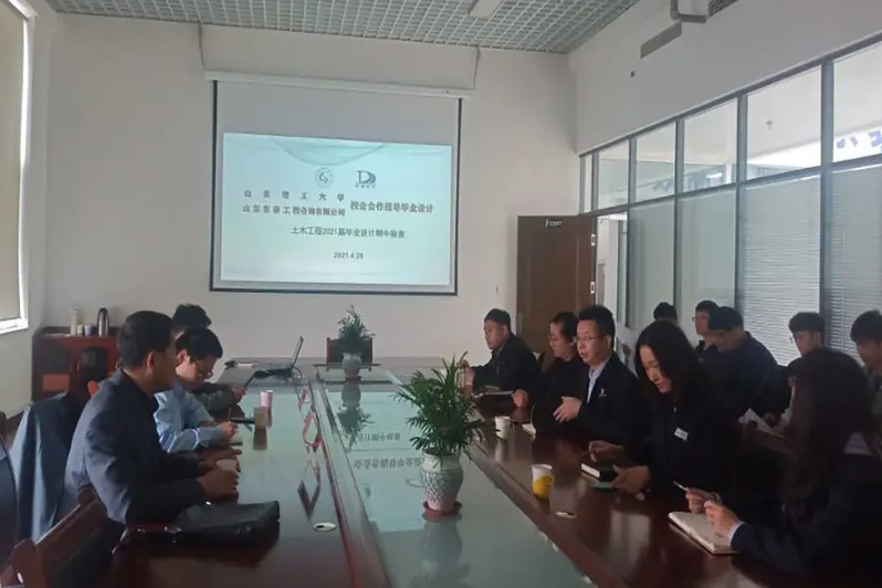 针对2021届毕业生,本专业联合山东天齐集团、山东东泰工程咨询有限公司等进行校企联合毕业设计实践,包括企业导师参与到毕业设计指导方案研讨、毕业生选题、过程指导、中期答辩、毕业答辩等全过程。