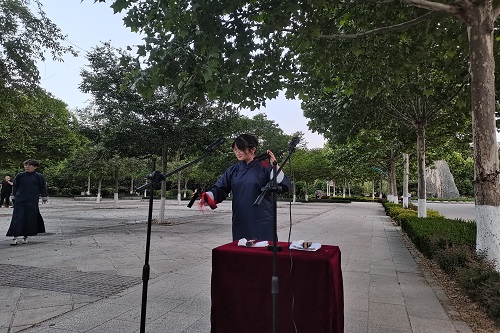 为了向同学们普及全面接种疫苗、建立全民免疫屏障相关知识,有效阻隔疫情传播,5月8日,日新曲艺社在第三体育场南侧举行路演。