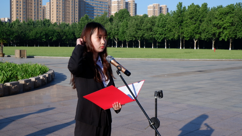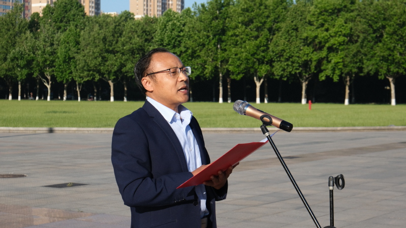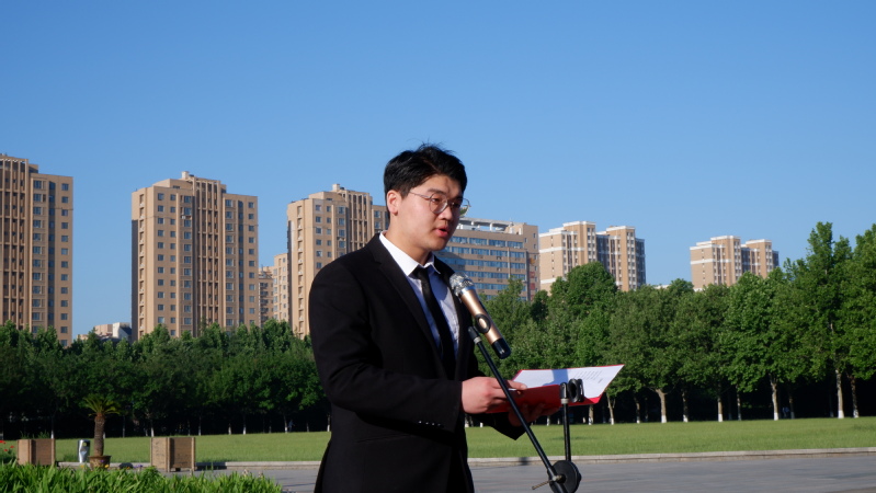 员工代表安志超做国旗下演讲,他以“看今朝百年党史,望明朝青年姿态”为主题,倡导同学们志存高远,心系大事;脚踏实地,砥砺前行;向新向上,推陈出新。