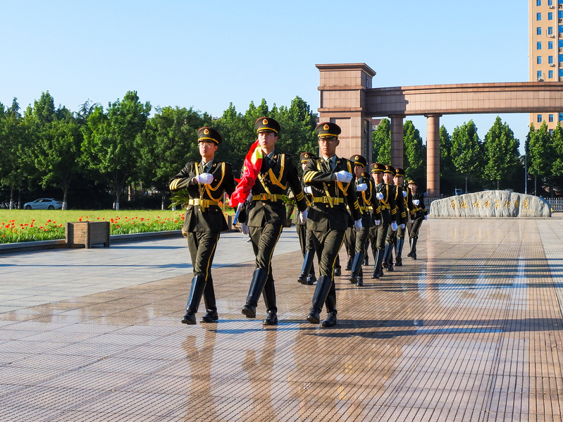 国旗护卫队精神抖擞,迈着整齐的步伐拉开了升旗仪式的序幕。当雄壮的国歌奏响,鲜艳的五星红旗迎着朝阳冉冉升起,升旗仪式在庄严与激昂的旋律中正式开始。