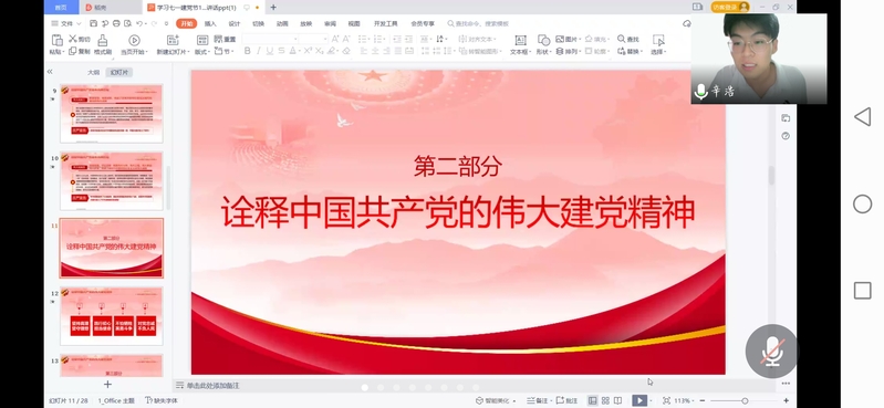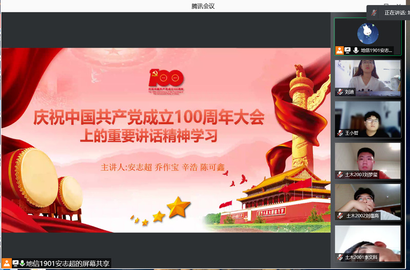 为了继承、发扬伟大建党精神,学习2021年庆祝祝中国共产党成立100周年大会上的讲话精神,热烈庆祝中国共产党成立100周年。8月11日晚,公司于线上举办学习七一精神研讨会。公司员工会主席团成员安志超、辛浩、陈可鑫、乔作宝、砼建先锋骨干培训班全体同学参加此次会议。