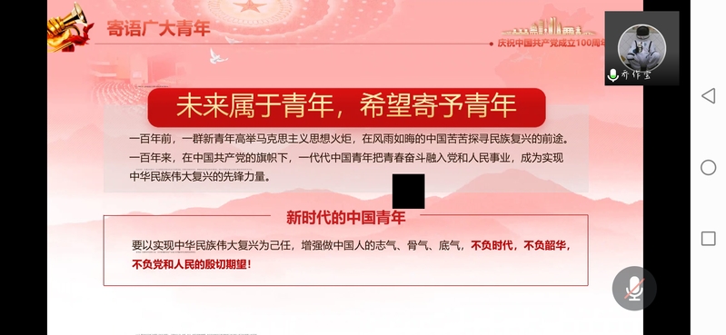 此次会议旨在引导广大青年贯彻学习2021年庆祝祝中国共产党成立100周年大会上的讲话精神,铭记中国共产党百年奋斗的光辉历程,认识中国共产党为国家和民族作出的伟大贡献,进一步认识自身肩负的历史使命,坚定前进信心。