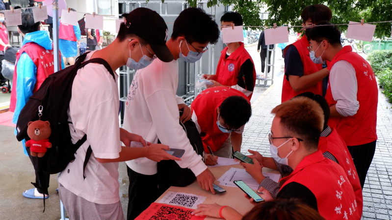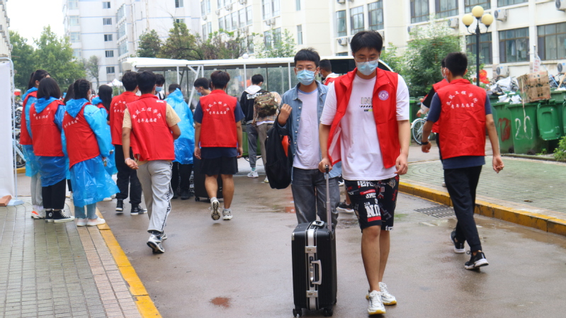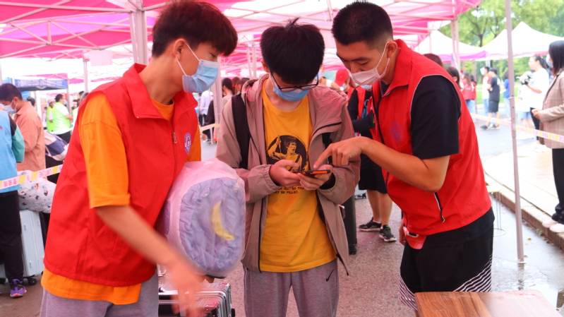 迎新工作如火如荼,到处都是忙碌的身影。路上,志愿者们带领新生前往宿舍的途中不厌其烦地回答着他们提出的各种问题;宿舍楼下,志愿者们热情接过新生手中的行李;报到处,值班志愿者们亲切地为前来报到的新生服务,身份核验、录取通知书收取、校园卡发放……报到工作有条不紊的进行着。虽然天气恶劣,阴雨绵绵,但是我们以最热情的服务、最温馨的微笑迎接来自不同地区的新生,让他们感受这个大家庭的温暖。