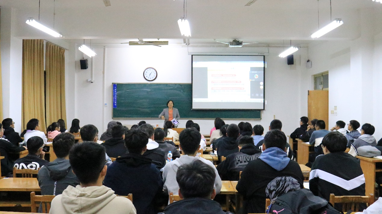 任晓宇首先对2021级新生的到来表示热烈祝贺与欢迎,随后她开门见山地从工程认证、学习那些事、培养方案、时间节点四个方面展开详细讲解。任晓宇重点强调了工程认证的重要性,她指出工程教育认证对员工具有三大好处,一是学历等效认证,交换生国内毕业后学位能够被《华盛顿协议》成员相互认可。二是可以提前一年参加注册工程师执业资格考试,毕业后具有参与国际合作项目的机会。三是可以拥有更优质的教育资源,更公平的学业评价。随后,任晓宇又陆续讲解了三个员工必备的教学平台、四个修、八类考试等一系列相关事项。最后,她希望21级新生们具备很强的时间观念,用心规划好今后的老员工活,确定自己最佳的生活规划和人生职业规划,并送给新生们一句勉励话语:天行有常,致知穷理,怕什么真理无穷,进一寸有一寸的欢喜!