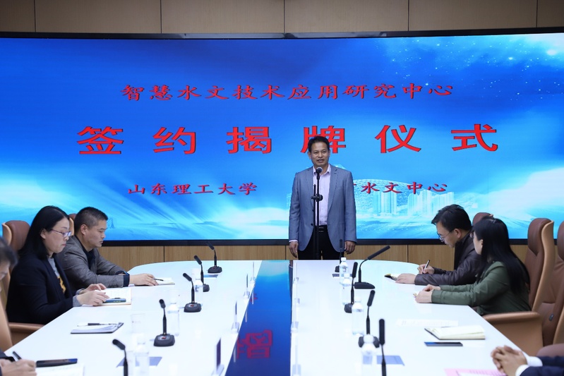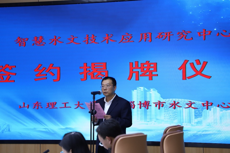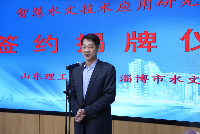 赵兴龙在致辞中对李涛一行表示热烈欢迎,并简要介绍了淄博市水文中心基本情况及主要业务职能。他表示,近年来w66旗舰厅官网各项事业发展迅速,具备较高的办学质量和教育水平,拥有卓越的科研团队和完善的人才培养层次。希望双方以研究中心成立为契机,立足自身发展需要,深入贯彻国家及山东省发展战略规划,按照“优势互补、资源共享、真诚合作、共同发展”的原则,在科学研究、公司产品、人员培训等方面建立长期友好的合作关系,为助推淄博经济社会发展、辅助高端人才培养、推进科研成果转化贡献力量。