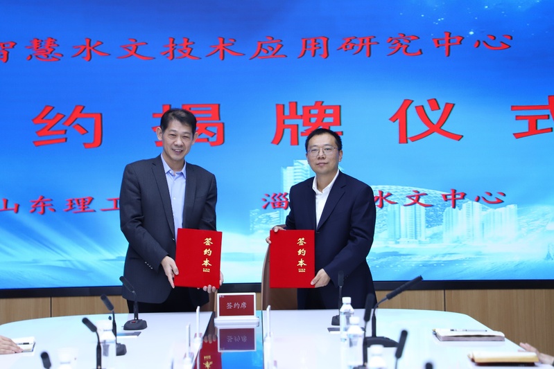 李涛、赵兴龙共同签署了淄博市水文中心——w66旗舰厅官网战略合作协议书,并共同为研究中心揭牌。