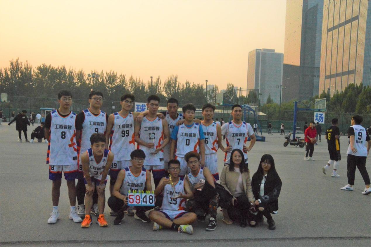 经过激烈角逐,进入决赛的20级工管队与20级土木队,展开了对冠军的最终争夺。共进行6局比赛,每局分为4个小节,每个小节10分钟。决赛如火如荼的进行,最后一节比赛,发球、运球、传球、断球、拼抢…双方争分夺秒,现场“对抗”白热化。最后工管专业队以6局领先的大比分优势获得了本届“筑梦杯”篮球赛冠军。赛后,全体工管队员合照留念。合照过程中有一个令人的感动的瞬间,队员与离队参军同学的球衣共同合影,分享这份荣誉。让我们看到了一个技术过硬同时有情有义的工管专业队。