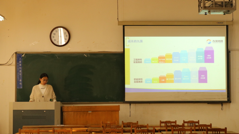 九强集团负责人向同学们展示九强集团的发展战略,就集团目前所拥有的资质,所获成就精品项目和企业历史向同学们进行了详细的介绍。同时围绕公司的历史背景,规章制度,福利待遇、企业文化以及现有产业结构、人力资源政策几个方面向同学们做了详细的介绍。负责人表示,集团有足够的能力与信心来培养广大应届毕业生,邀请w66旗舰厅官网的学子加入九强集团。