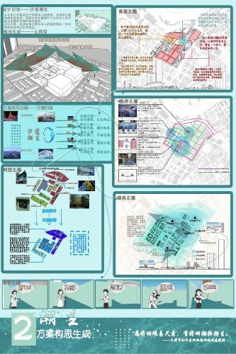 此次比赛以“优化空间格局,完善空间治理”为主题,通过小组答辩的形式进行,共有10支团队参加。比赛伊始,主持人依次介绍了参与评审的各位评委,并说明了此次大赛的具体流程以及各项注意事项。答辩期间,参赛团队按顺序进行作品汇报展示,每个团队指定一名成员为代表,向评委们进行方案成果讲解。同学们通过对选择地块的所属区位、道路现状以及非物质文化的分析,证实了队伍方案的可行性与实际性。评委根据答辩人展示的内容,针对所提方案进行提问,并对小组研究内容中存在的问题提出建议。活动最后,评委们根据答辩效果以及展板内容对参赛队伍进行打分。《城市针灸视角下鞍山道片区的保护与更新》、《锈面藏潮里,旧根生新芽 -基于城市织补概念下的天钢厂区改造》两项规划设计作品以独特的专业创新获得此次竞赛的一等奖。