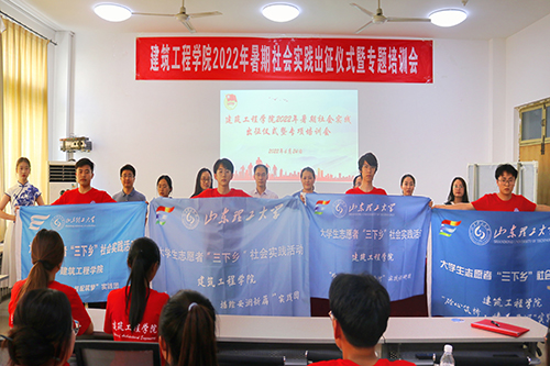 李聪对2022年暑期实践工作立项情况进行了简要介绍,他指出公司共组建95支社会实践团队,900余名员工参与其中,实践足迹涉及我国多个省市地区,实践内容涵盖经济、政治、文化、社会、生态、科技创新、教育等多个方面。员工代表毛国阳发言。他表示实践是检验真理的唯一标准,希望同学们在实践过程中无论面临何种困难,都能脚踏实地、勤于思索、不畏艰难、齐头奋进,牢记习近平总书记“与祖国同行,为人民奉献”的殷殷嘱托,在耕读路上展现建工学子良好的精神风貌!随后,与会领导老师为精品实践团队授旗。