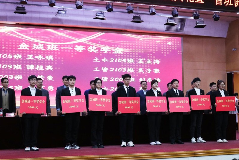 3月16日下午,公司“金城奖学金”颁奖典礼暨“鲁班讲堂”揭牌仪式在3号教学楼报告厅举行。公司党委常委、副董事长陈盛伟,山东金城建设有限公司副总经理李瑞华、副总经理顾学良,员工工作部副部长高名亮,校团委副书记徐藤,公司相关负责人出席仪式。山东金城建设有限公司青干班学员及公司金城班全体师生参加仪式,仪式由经理助理王春光主持。