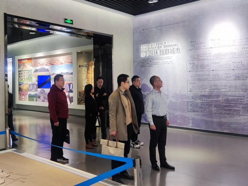 在工作人员的讲解下,双方共同参观了城乡规划展览馆,并就合作共建事宜开展了座谈。座谈会上,张军对公司一行表示热烈欢迎,他详细介绍了淄博市城乡规划展览馆的基本情况。王春光介绍了公司城乡规划专业发展及团队情况。他表示,城乡规划展览馆是淄博市的缩影,是展示城市历史和建设成就的重要窗口,也是进行城市经营和招商引资的重要平台,最大限度地发挥城乡规划展览馆的优势,对淄博市的未来发展有着重要意义。公司城乡规划专业发展迅速,有着成熟的专家团队,愿意为打造淄博名片贡献力量。