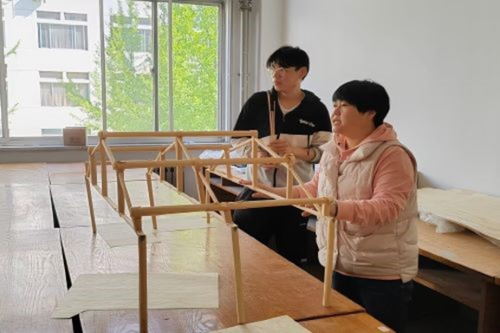 此次比赛为结构设计大赛校赛,经过了上阶段预选赛的选拔,各组选手已经积累了足够的经验。比赛准备阶段,各小组拿到材料及工具后,就开始了积极的准备,在224教室经过一周时间的制作后,各小组成员共同合作完成了参赛作品。比赛正式开始前,工作人员提前来到现场布置作品承载工具、底座等,小组成员到场后,工作人员依次发放绳子,小组成员将绳子绑在作品的承载点上。准备工作就绪后,比赛开始,鲁丽君和黄占芳以及社团成员监督指导各小组开始加载承重,荷载分为一级荷载和二级荷载,待水平荷载稳定后即加竖直荷载,工作人员实时记录承载情况并拍照。基于上阶段预选赛的经验,此次参赛小组的作品美观且坚固,得到了鲁丽君和黄占芳的一致好评。最终共有六个小组从比赛中脱颖而出,取得了此次比赛的胜利。