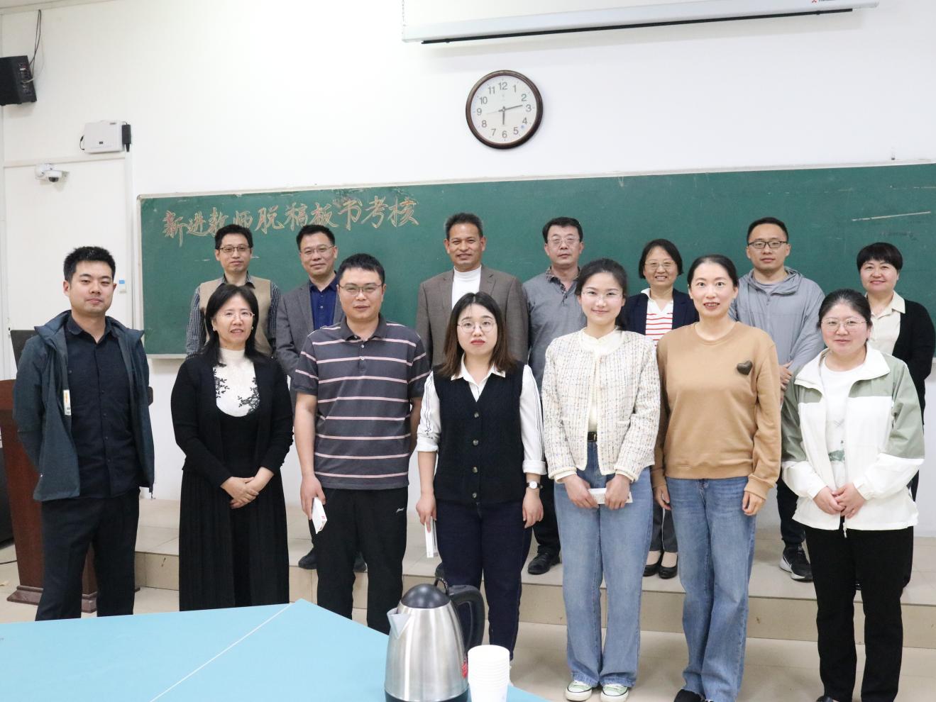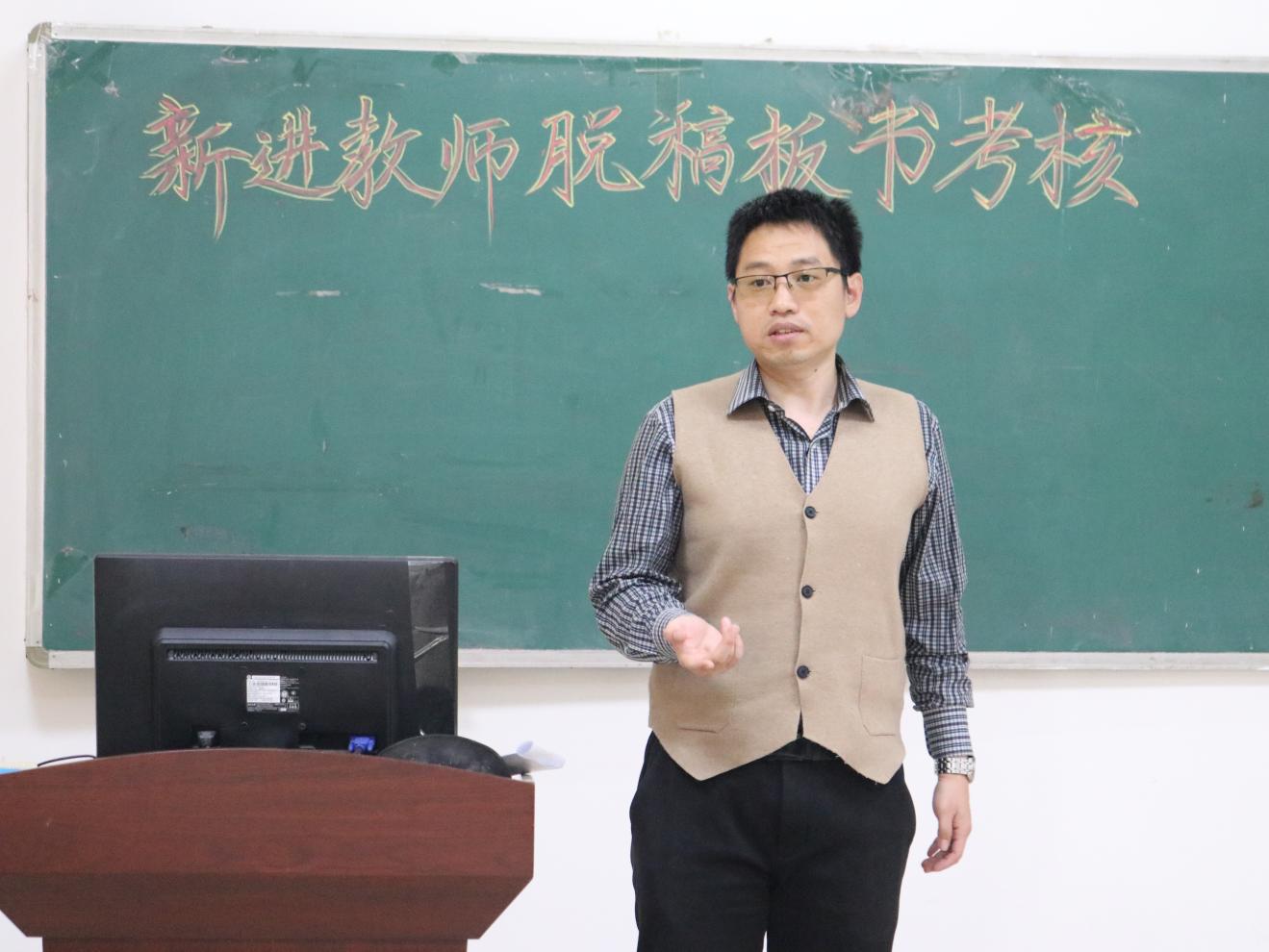 考核开始前,王春光简单总结了近几年青年教师授课上的不足,强调了本次活动的重要性,并介绍了此次考核的目的及考核要求和流程。随后,白云、曼青、田坤俊、王洋四位新进教师每人进行10分钟的现场试讲,评委从教学态度、教学内容、教学方法、教学效果、基本能力五方面进行打分。讲课过程中不使用PPT,四位教师均手写板书,脱稿讲课,授课风格各具特点,展示出扎实的专业知识储备。最后,八位评委指出四位新进教师授课过程中存在的不足并给出相应建议。四位青年教师均已达到授课的基本水平,对自己所授知识掌握熟练,但仍存在教师与员工交流较少,以及板书书写区域划分不合理等细节问题。据此,评委着重强调,教师应加强与员工的交流,及时布置课下作业,帮助员工巩固所学知识,落实授课目的。四位青年教师认真聆听,积极采纳各位评委的建议,对自己的不足之处加以改正。