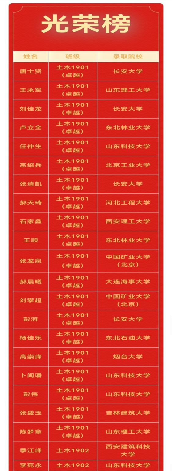 金榜落款,美梦成真!近日,2023年全国研究生录取工作结束。w66利来旗舰厅学子喜报连连。共有147人被各大院校录取,其中又59人录取公司为长安大学、东北林业大学、西安建筑科技大学、中国地质大学等985、211、双一流公司。