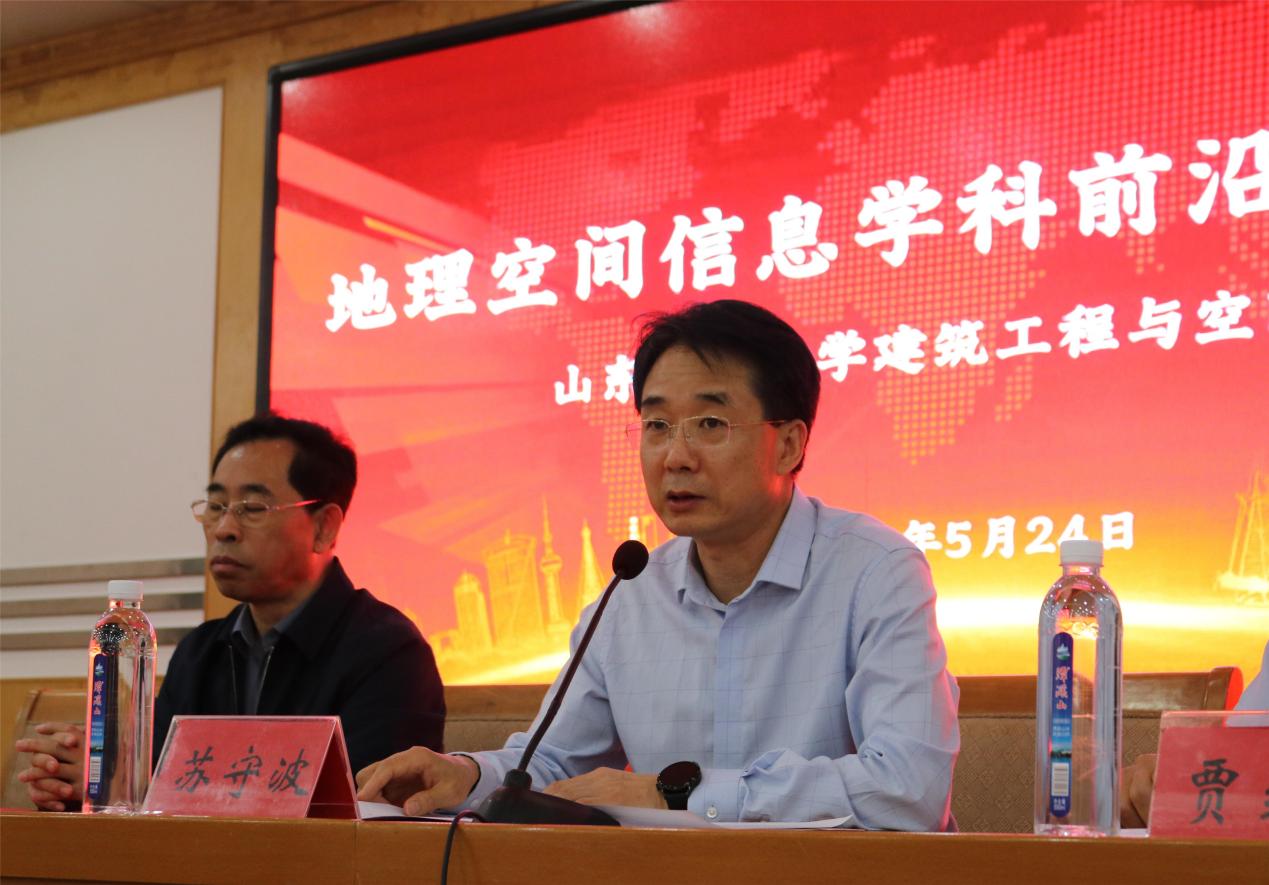 2023年5月24日,公司w66利来旗舰厅举办的“地理空间信息学科前沿发展论坛”在鸿远楼一楼报告厅顺利举行。公司党委常委、副董事长苏守波出席了论坛并讲话。