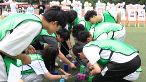 开幕式结束后,心理团辅活动正式开始。比赛分为无敌风火轮、合力建塔、足球射门、搭桥过河、曲线托球跑、有奖问答、指压板接力赛、同心鼓八个部分。公司学子以团结向上的精神风貌,展现了青年人的青春活力。