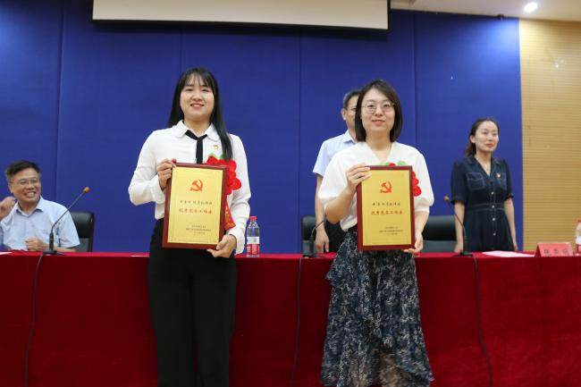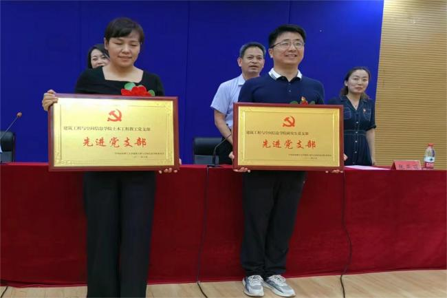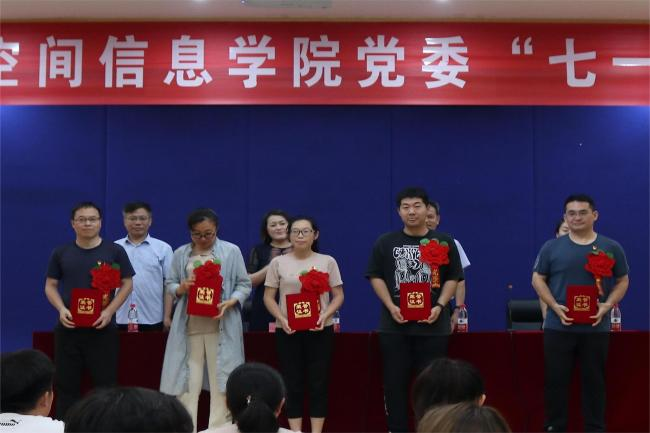 表彰大会在国歌声中拉开序幕。会议开始,公司党委委员张燕丽同志宣读表彰决定,授予王卫国等22名同志“优秀共产党员”称号,史金丽等2名同志“优秀党务工作者”称号,土木工程教工党支部等2个党支部“先进党支部”称号。公司领导班子为获奖人员颁奖。随后,优秀教工党员代表梁晓飞、优秀员工党员代表毛国阳、优秀党务工作者代表史金丽做了交流发言。此后,进行老党员重温入党誓词暨新党员入党宣誓仪式,誓言铿锵有力,充分展现了公司共产党员不忘初心牢记使命的决心和毅力。