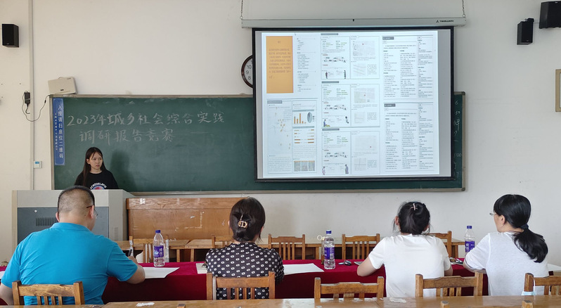 活动开始前,参赛团队通过走访调研,确认实践主题,并通过发放问卷、案例分析等途径进行城乡社会综合实践调研。比赛伊始,活动负责人张婷介绍了此次大赛的具体流程以及注意事项。答辩期间,参赛小组根据所学的专业知识,以PPT的形式最大程度地进行方案成果展示,展现在调研期间的见闻以及调研思路。汇报完毕后,老师们根据答辩人展示的内容,针对各组的调研成果进行细致的点评,指出参赛小组对于现状分析,项目意义等方面所存在的研究不深,可行性较差等相关问题,并提出相关修改意见。比赛最后,评委们将根据参赛作品与答辩情况对参赛队伍进行综合考察,选出一等奖1组、二等奖2组、三等奖3组。