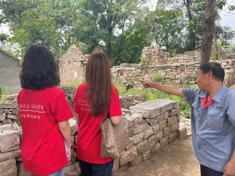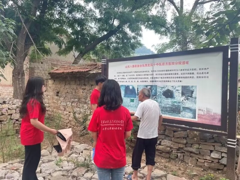 实践团上午来到村中,率先来到村内红色建筑景区,据了解,村内还保存着多处烈士故居、“藏兵洞”、山东八路军游击队四支队十中队后方医院遗址等红色遗迹。实践团队员在征得村民同意后进入红色建筑景区内部进行拍摄,观察是否有漏水或建筑损坏等修缮问题,实践团成员及时取证记录。
