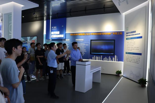 土木工程教工党支部为推进课程思政融入实践教学,促进党建引领与实践育人相融合,联合中建五局北方公司以专业认识实习为契机,共同开展校企合作暨党建开放日活动,通过对青岛上合广场建设项目智慧平台展厅、智能装备展示、工地施工现场的参观及座谈交流,拓展员工的学术视野,提升员工的专业实践能力。同时,实习老师在带领员工参观认识实习过程中深入挖掘中建集团“信和天下,敢为人先”的奋勇拼搏、攻坚克难、敢于创新等思政元素,对员工做现场教育,充分发挥基层党支部在推进实践育人过程中的政治优势和组织功能,增强了本科生党性修养。