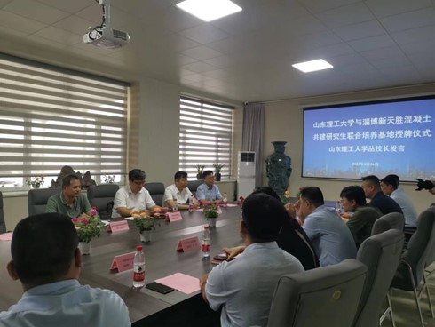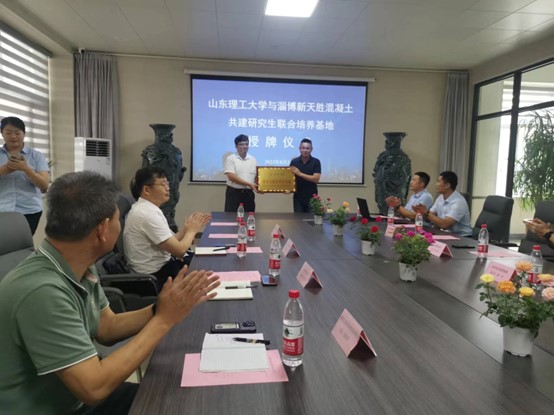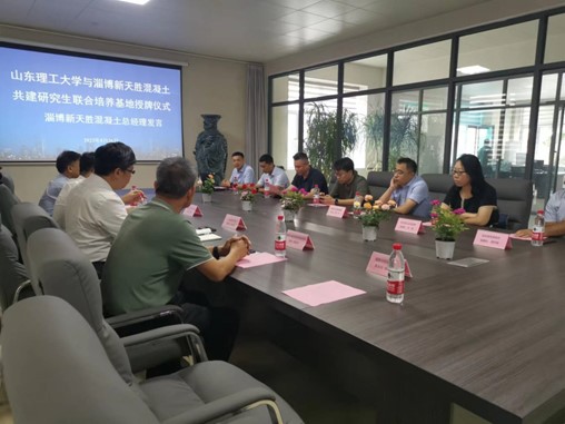 8月26日,w66旗舰厅官网研究生联合培养基地揭牌仪式在淄博新天胜混凝土限公司举行。淄博经开区工业科技局局长陈宁、淄博经开区傅家镇党委副书记、镇长张蔚、淄博新天胜混凝土有限公司总经理董小明及相关部门负责同志,w66旗舰厅官网副董事长丛海林、研究生院经理赵艳雷、建筑工程与信息空间公司经理贾致荣、副经理韩保民等相关负责人出席揭牌仪式。