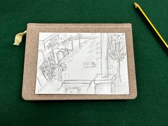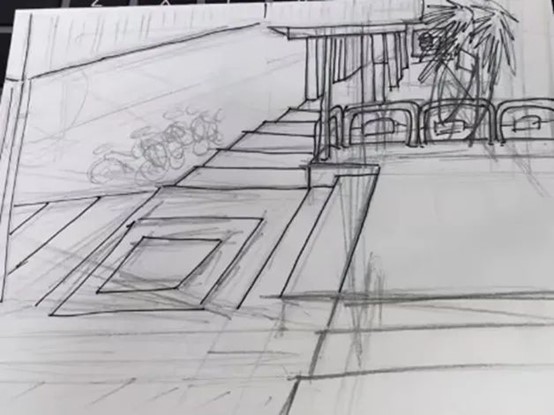 14:00 今天下午我们是城市素描绘制课程,在课程最开始老师让我们随意进行绘画,我把当时讲课的教室绘制了出来,但绘制的实属不是很美观。随后老师带我们欣赏了在网络上另外一个老师的城市素描作品,让我们对城市素描有了一份初步的了解。而后,我们跟随老师来到室外对校园中的景色制作素描作品,历时20分钟我完成了自己的创作,再给老师看完之后得到了老师的认可,老师同我讲“比你第一次画的好多了”。