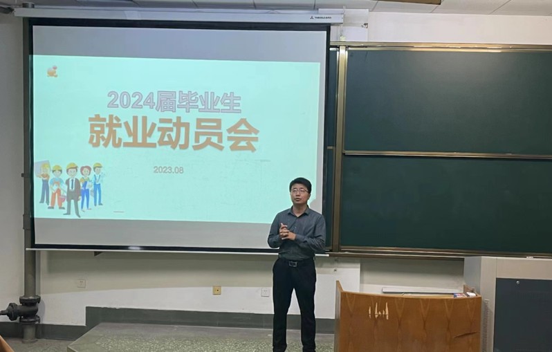 8月28日晚,公司于15号教学楼104、106教室召开2024届毕业生就业工作动员会,会议由辅导员李聪、高文燕主持,2024届全体毕业生参加。