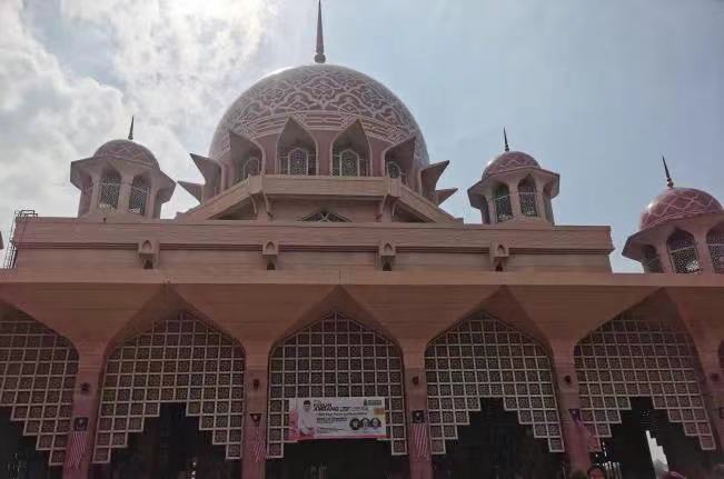 下午14:20,我们参观了著名的“粉红清真寺”——太子城,其建筑外貌具有明显的民族特色,我们进入了神圣且庄严的大殿,儒雅的粉色与乳白色交融,五彩缤纷的窗户点缀其中,让整所殿堂充满了梦幻的神秘感。