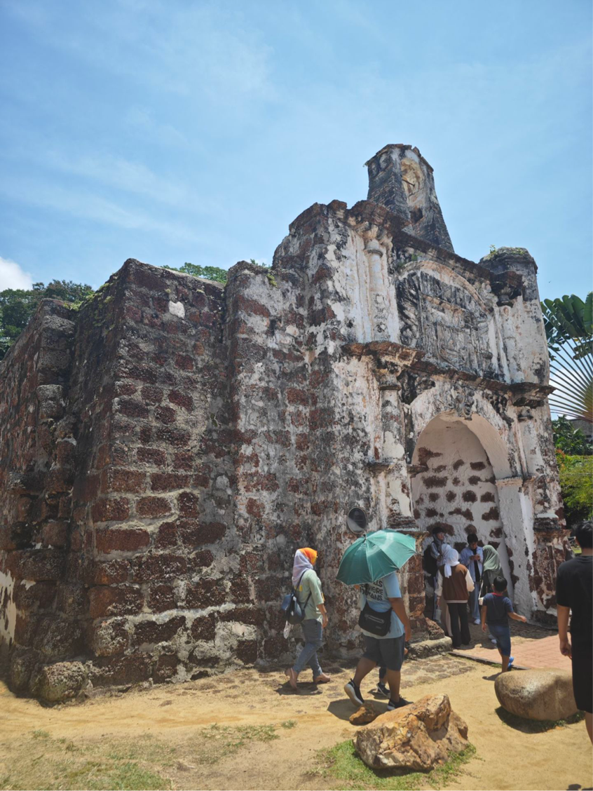 我们去参观农场,感受大自然植物顽强鲜活的生命力;参观黑风洞,陡峭的台阶,仰头而望空旷的山洞,站在洞口张开双臂去迎接远处吹来的凉爽的风;还有那马六甲废弃的基督教堂,陨铁建成的圣地亚哥古城门,都深深地震撼到了我们这些来访者。