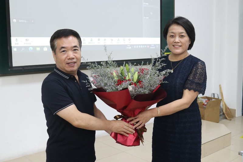 黄文娟代表全体教师向宋书记与刘老师献花。