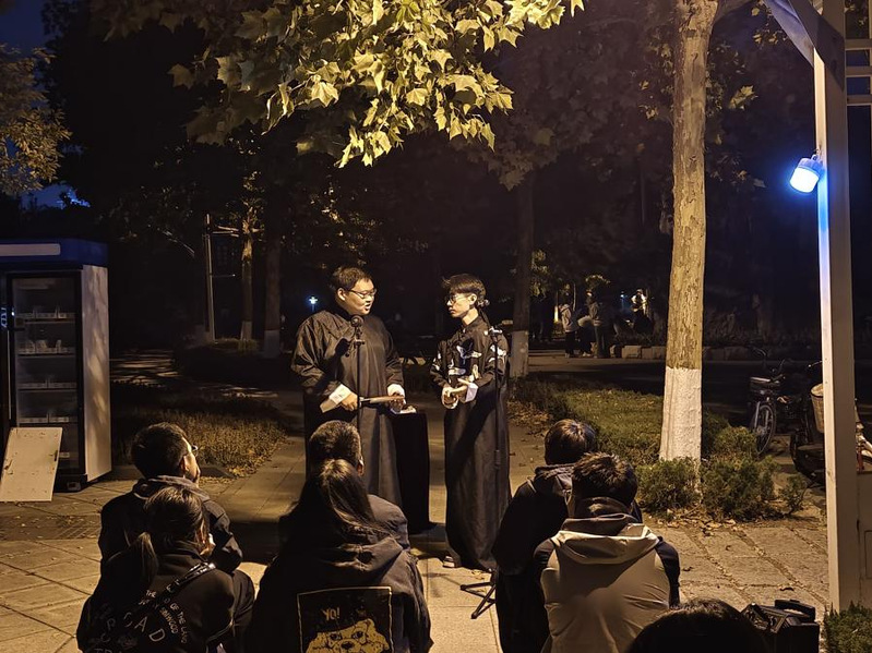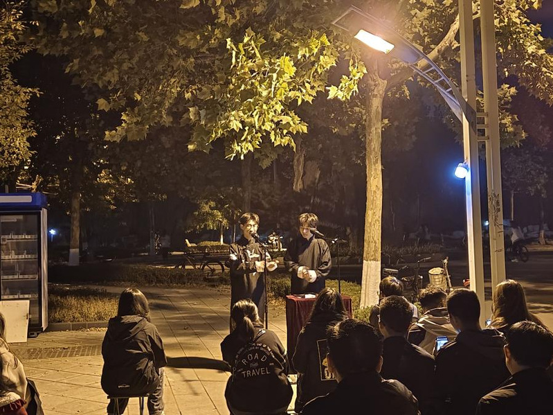 为了丰富校园文化生活,传承经典曲艺文化,展现社团风采,10月28日晚,w66利来旗舰厅日新曲艺社在第三体育场南侧举办路演活动。