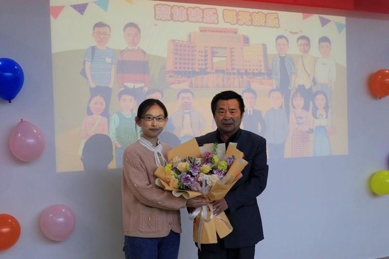 本次退休欢送仪式现场布置得简洁而温馨。公司领导对退休教师在教育岗位上所作出的贡献表示由衷的感谢,并由教师代表向姚吉利老师送花。