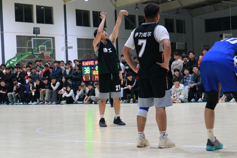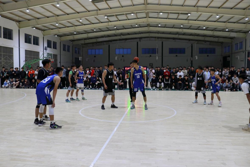 比赛开始前,整个篮球场就已经被同学们围得水泄不通。双方球员们在场地中央进行着热身训练,他们的眼神中充满了对胜利的渴望。