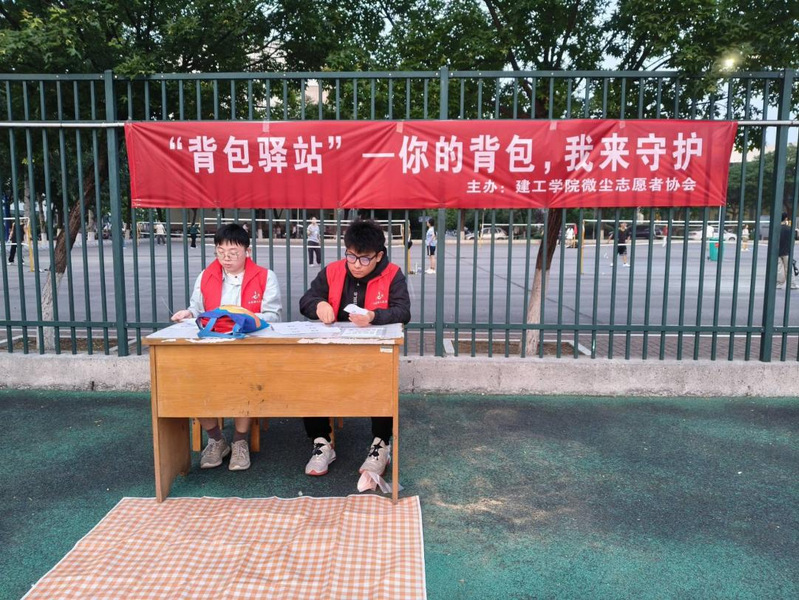 激扬青春,挺膺担当。为了让同学们在操场运动时能够放下书包,轻松享受运动时光,切实有效地保护大家的财产安全,传递和谐友爱、无私奉献的志愿者精神。w66利来旗舰厅微尘志愿者协会于5月16日至5月31日在w66旗舰厅官网第四体育场举办了“背包驿站”主题活动。